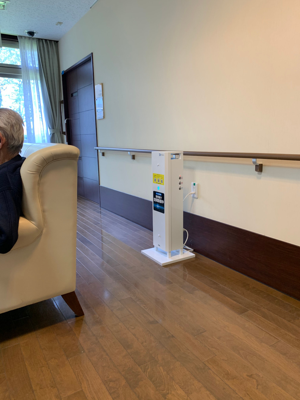 更衣室に窓がなくて換気がしにくいため、一つは更衣室に設置しました。更衣室は職員がうがいや歯磨きをするため、マスクをはずすこともあり、気がかりでもありましたので、職員からは好評です。もう一台はご入居者様のつかうリビングに設置しました。スリムで音も静かですので、ご入居者様もあまり気にされずに過ごされております。