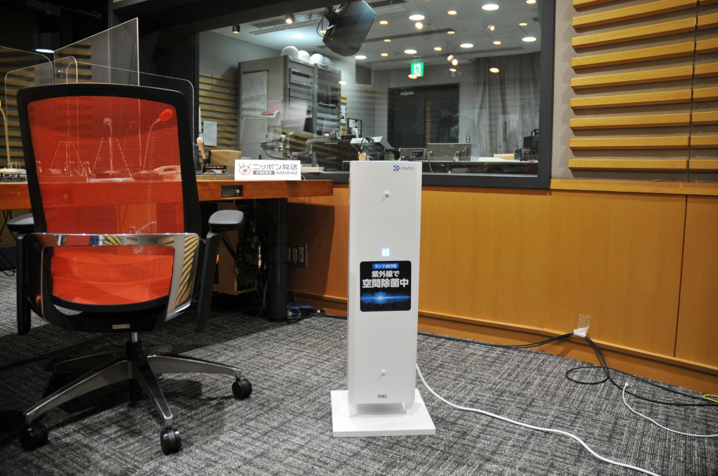 昨年度よりご出演者、スタッフの健康を守るべくアクリル板導入に始まりマイクの除菌等コロナ対策を講じてきました。今回、放送局としては国内で初めて紫外線空気除菌装置を導入しました。引き続きコロナ感染対策として研究者の方々と連携を図って参ります。